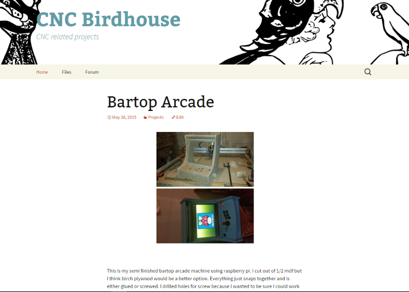 Cncbirdhouse is a site a put together to share some of the CNC projects I had been working on as well as share my file. I used Wordpress to set it up.