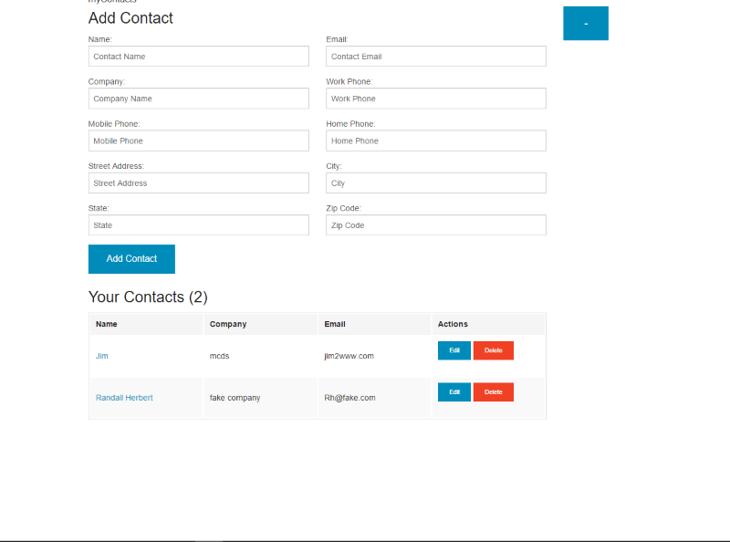 The Contact Generator is a simple app put together with angular. It connects to a firebase database to store and retrieve data. You can try it by adding, deleteing, or editing your own entires.